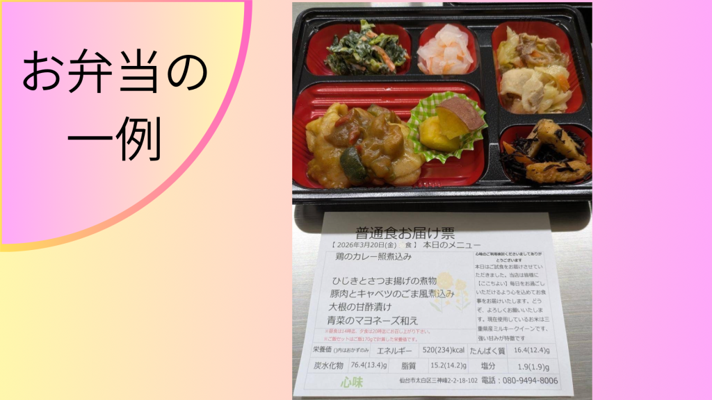 お食事は、手渡しで毎日2回(お昼と夕方)にお届けいたします。